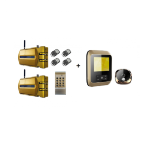(Español) Pack 2 Cerraduras Doradas + Mirilla Dorada
