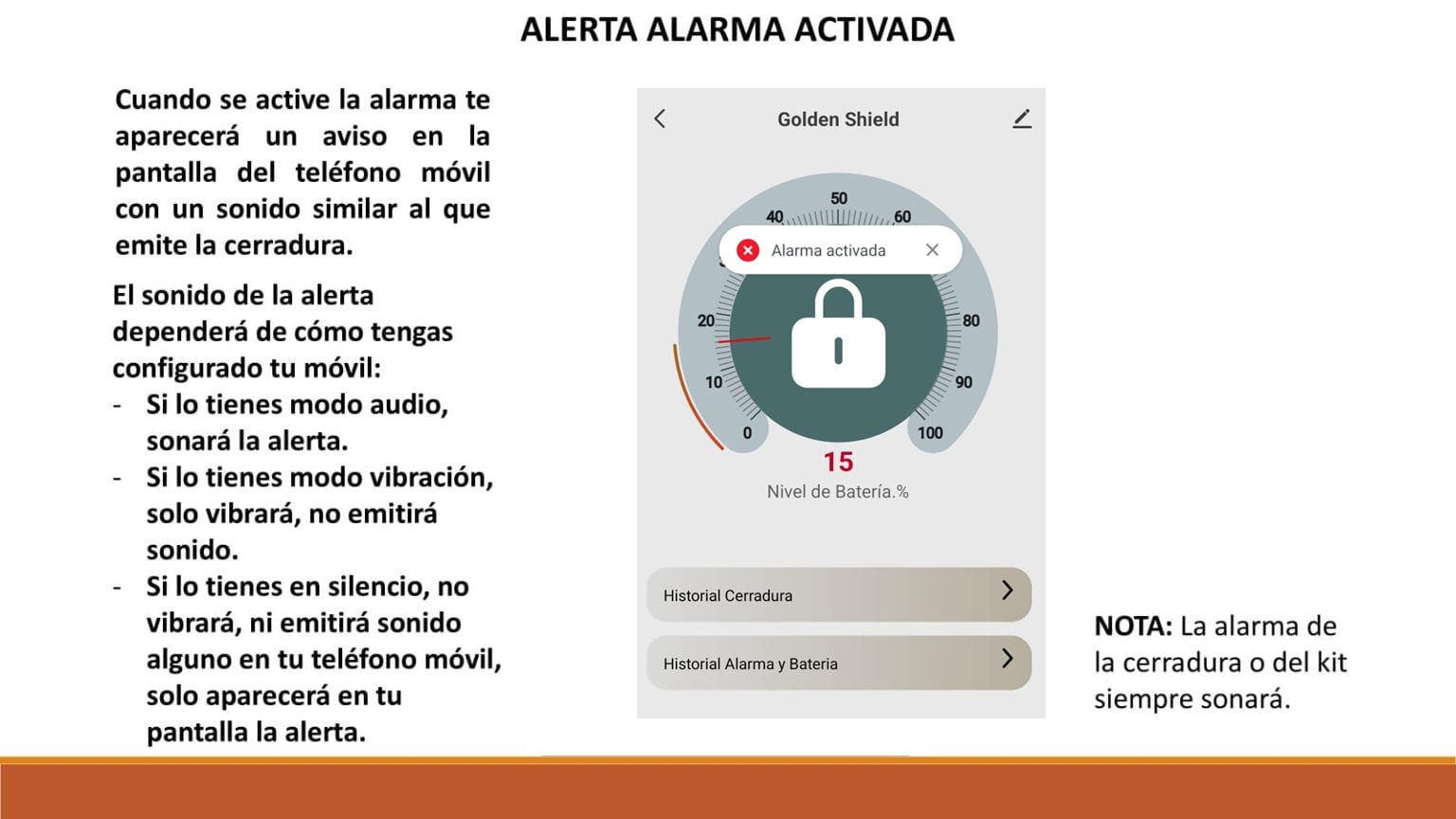 • cerradura invisible con alarma dorada Golden Shield Alarm dorada 3 mandos a distancia
