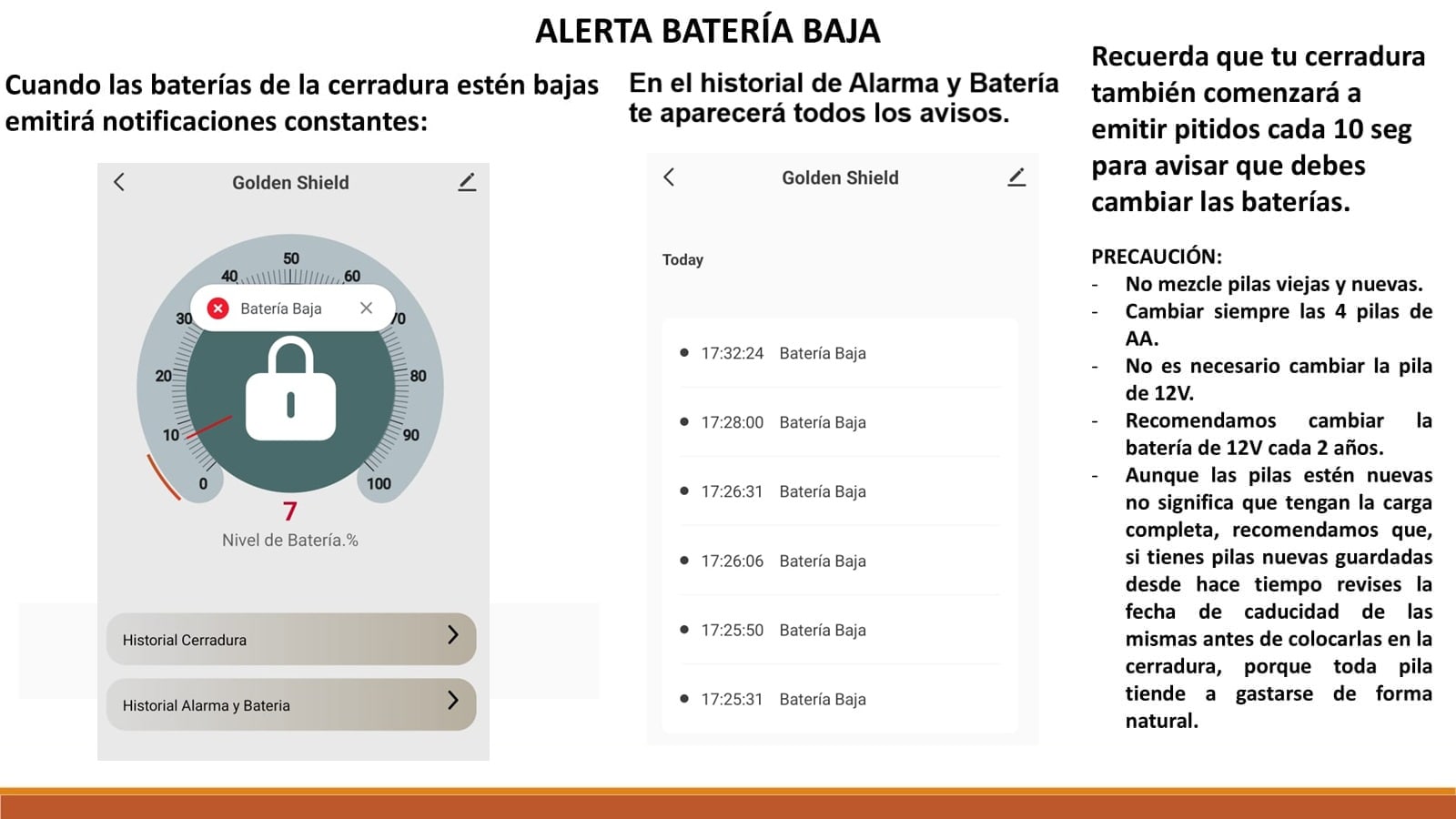 • cerradura invisible con alarma 120db Golden Shield Alarm dorado 4 mandos a distancia